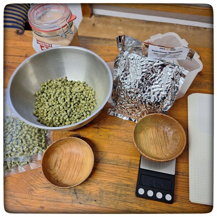 Als denn wollte ich das Pils zum Niederknien erneut brauen. Kein Diamant, kein Saazer. Ach mei. Muss halt wieder improvisieren. Nehmen wir halt Tettnanger und Mittelfrüh.