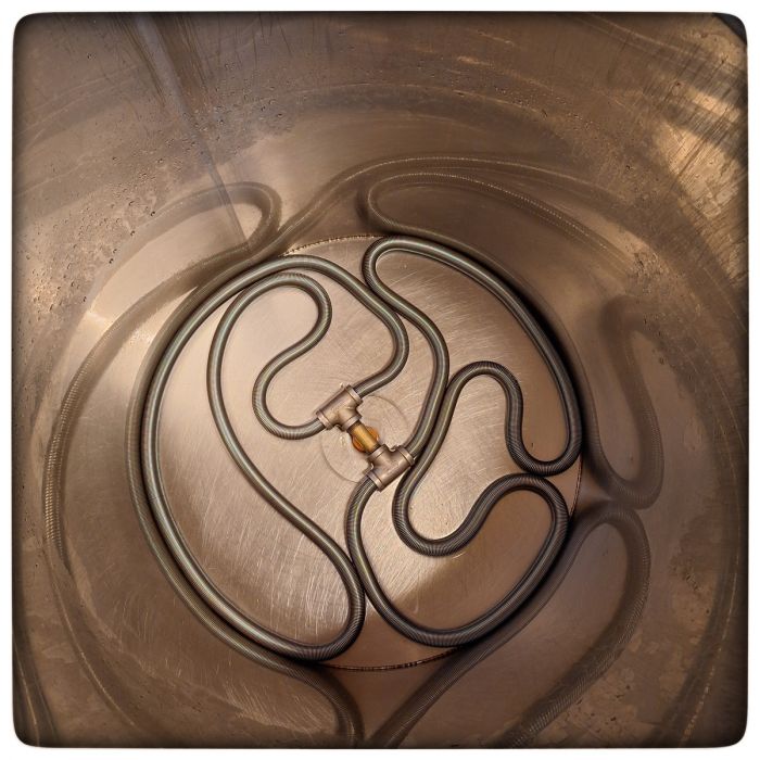 Hat man den Sud in ausgeklügelten Temperaturstufen aufgeheizt und gut gekocht, muss er anschließend und schnell auf Anstelltemperatur(*) gebracht werden. Mit Kühlspirale oder Plattenkühler. Mit Mantelkühlung oder Gegenstromanlage. Oder in Kombination.
