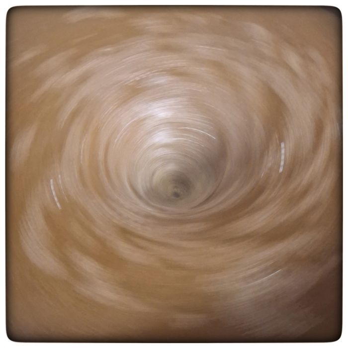 Die große Kunst beim Whirlpool ist es, in der Mitte den Boden zu sehen, ohne dass es gleichzeitig an den Seiten überschwappt. Diesmal hat es ganz gut geklappt. Mit dem großen Kochlöffel zunächst am Rand die großen Kreise ziehen, bis sich die ganze Würze in Bewegung setzt. Dann ganz, ganz innen wie ein Irrer strudeln. Mal sehen, wie hernach der Trubkegel(*) aussieht. Jetzt aber erst mal ausrotieren lassen.