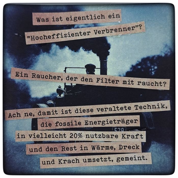 Ach ne, damit ist diese veraltete Technik, die fossile Energieträger in vielleicht 20% nutzbare Kraft und den Rest in Wärme, Dreck und Krach umsetzt, gemeint.