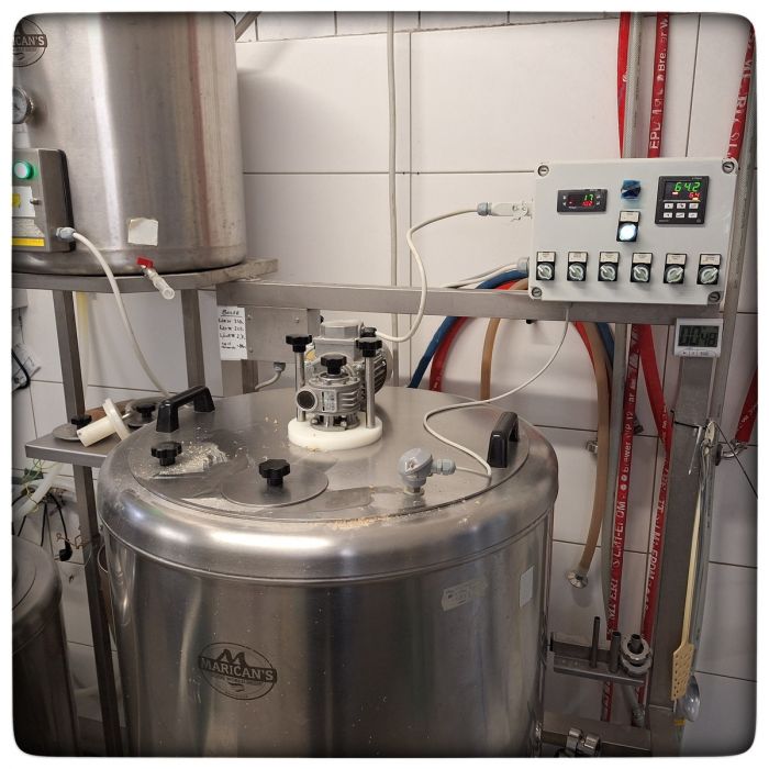 'Til now I had the great pleasure to brew at two so called nano breweries. No more than about 100 liters per brewing. I did about three beers in a 20 liter vessel at home. That was my experience. Today I entered the next level...