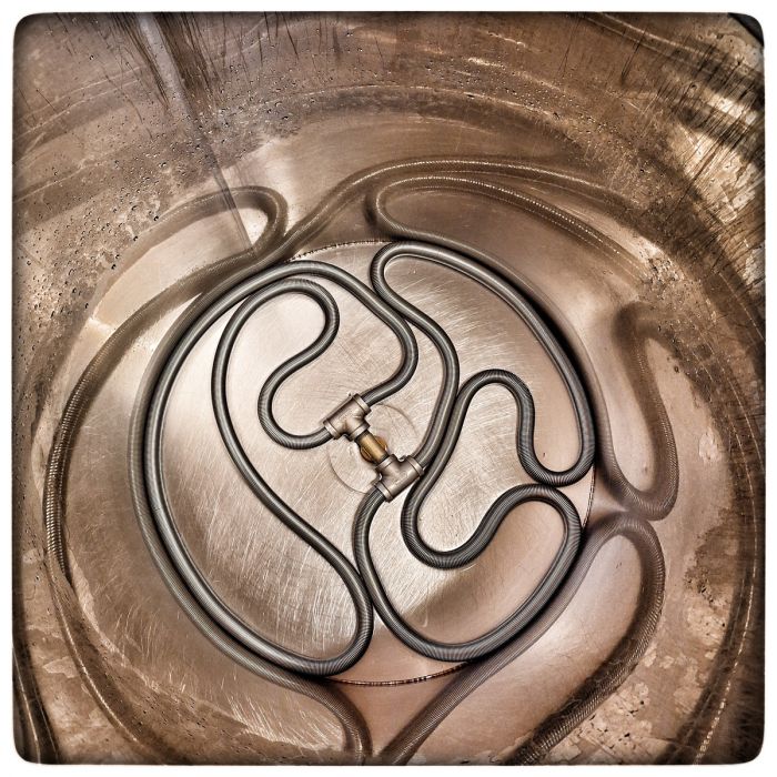 Hat man den Sud in ausgeklügelten Temperaturstufen aufgeheizt und gut gekocht, muss er anschließend und schnell auf Anstelltemperatur(*) gebracht werden. Mit Kühlspirale oder Plattenkühler. Mit Mantelkühlung oder Gegenstromanlage. Oder in Kombination.
